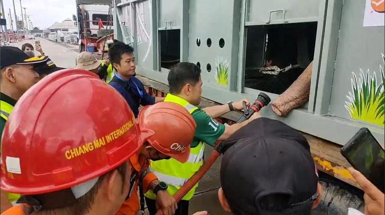 පැය 5ක ගුවන් ගමන සදහා තායිලන්තයේ සිට පැමිණි පශු වෛද්යවරුන් තුන් දෙනෙකු ඇත් ගොව්වෙකු හා සහයකයින් දෙදෙනෙකු මෙම ගමනට එක්ව සිටියහ.